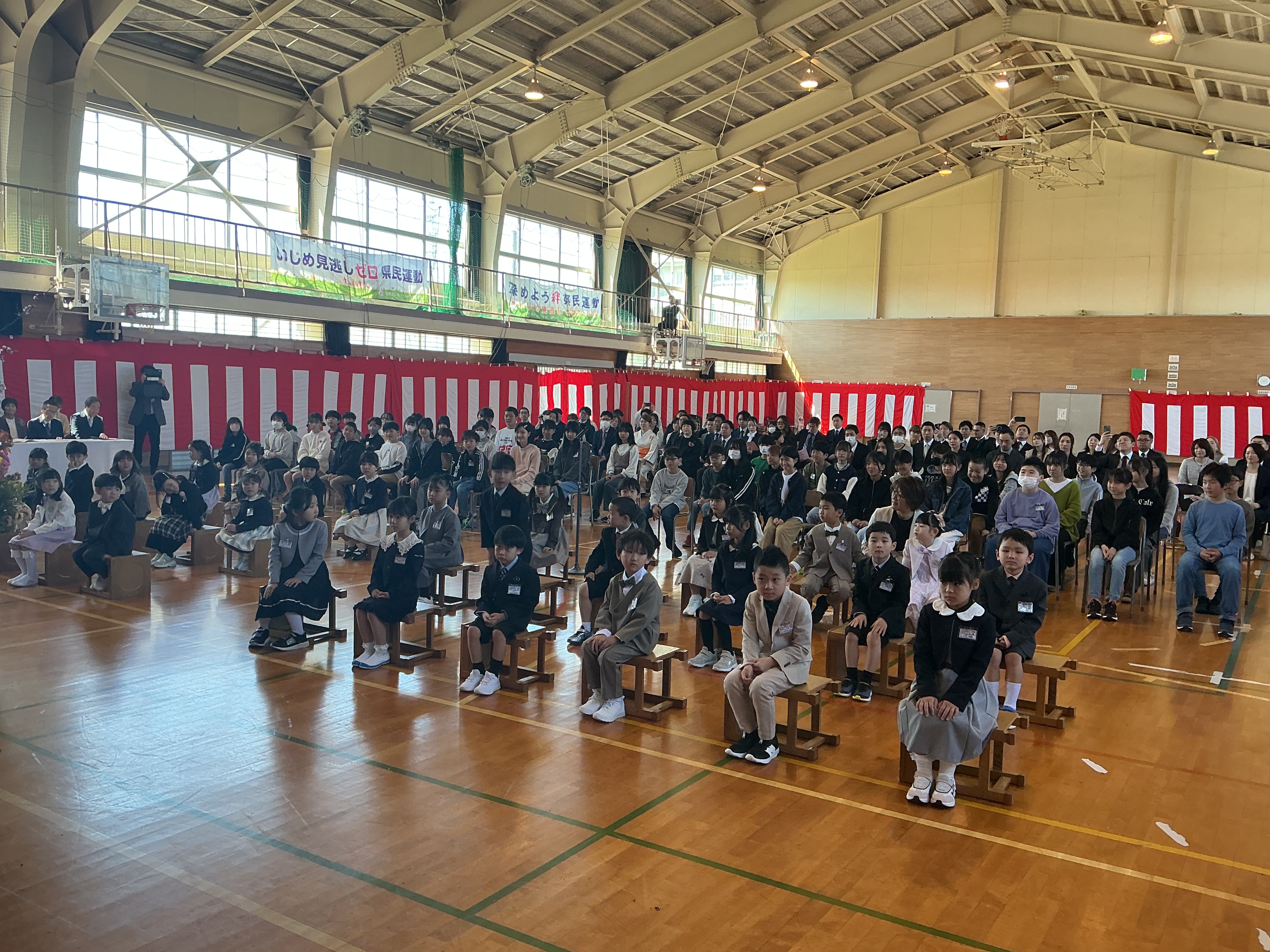 令和8年度入学式 令和8年度の入学式が行われ、33名の新入生が入学してきました。新しい環境に緊張しながらも、胸を弾ませている子どもたちの姿はとてもほほえましく、迎え入れる私たちもわくわくしてきました。 当日は在校生を代表して、6年生が参加してくれ、歓迎の言葉や校歌のプレゼントをしてくれました。これから始まる1年生の小学校生活を支えてくれることでしょう。