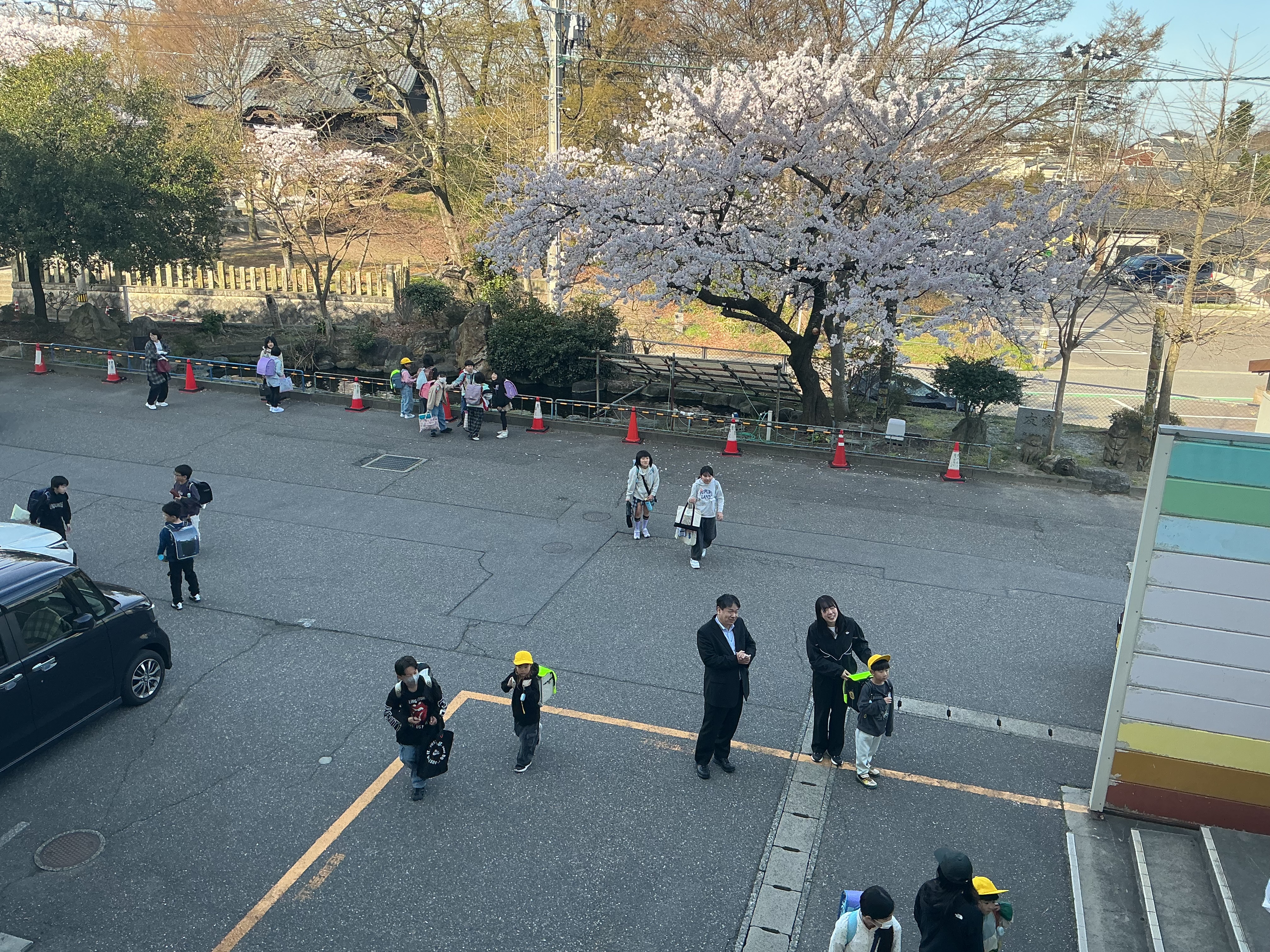 新学期がスタートしました 1年生も揃って本当の意味での新学期がスタートしました。折しも満開の桜の下、子どもたちが張り切って登校する姿が見られました。 これから1年間、様々なことがあると思いますが、今の桜のように一人一人が花を開かせる時間になって欲しいと願っています。